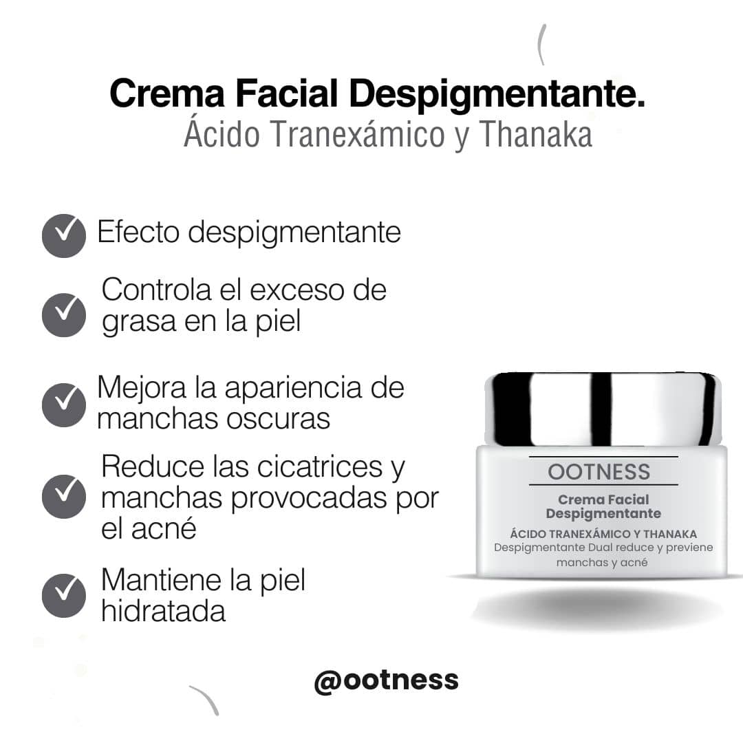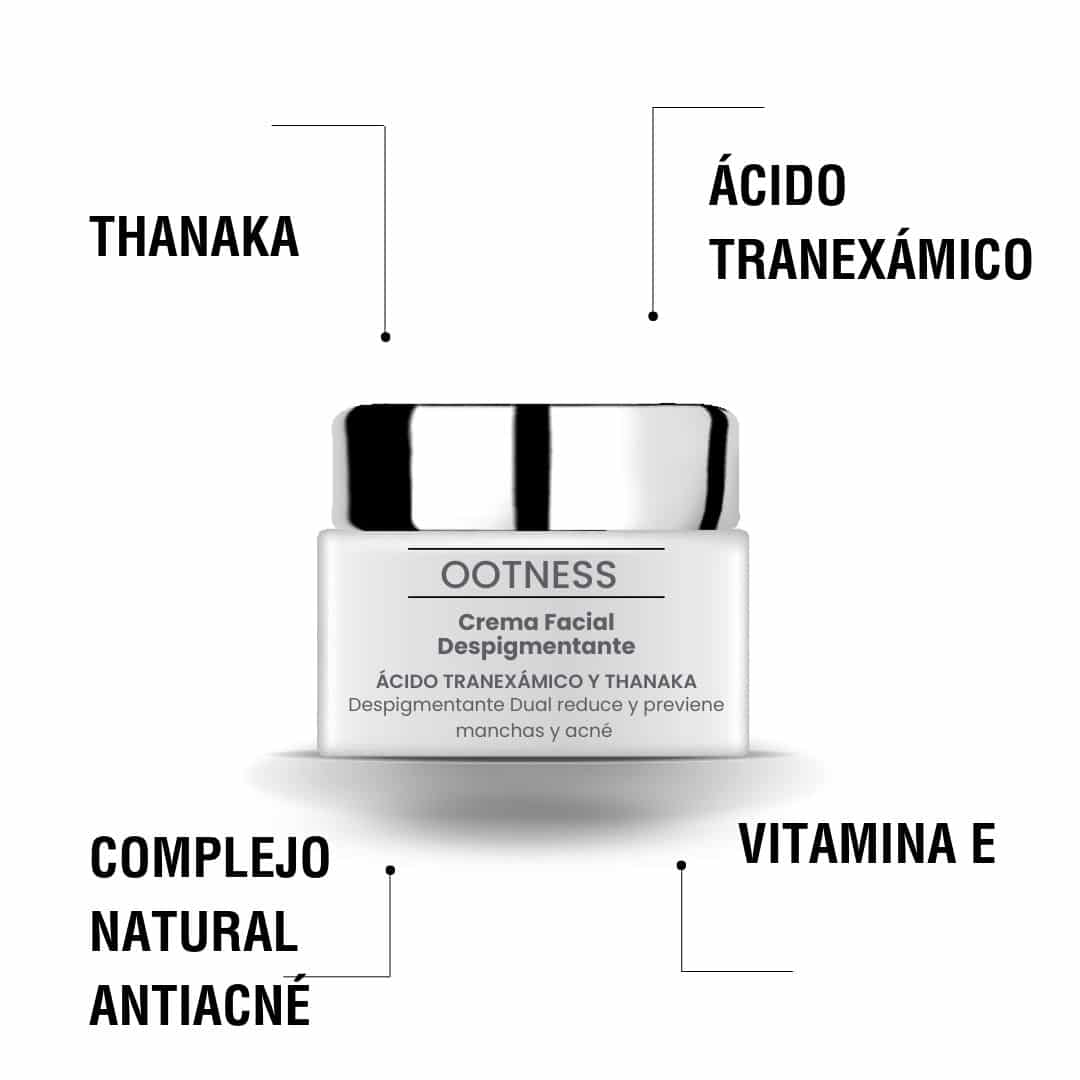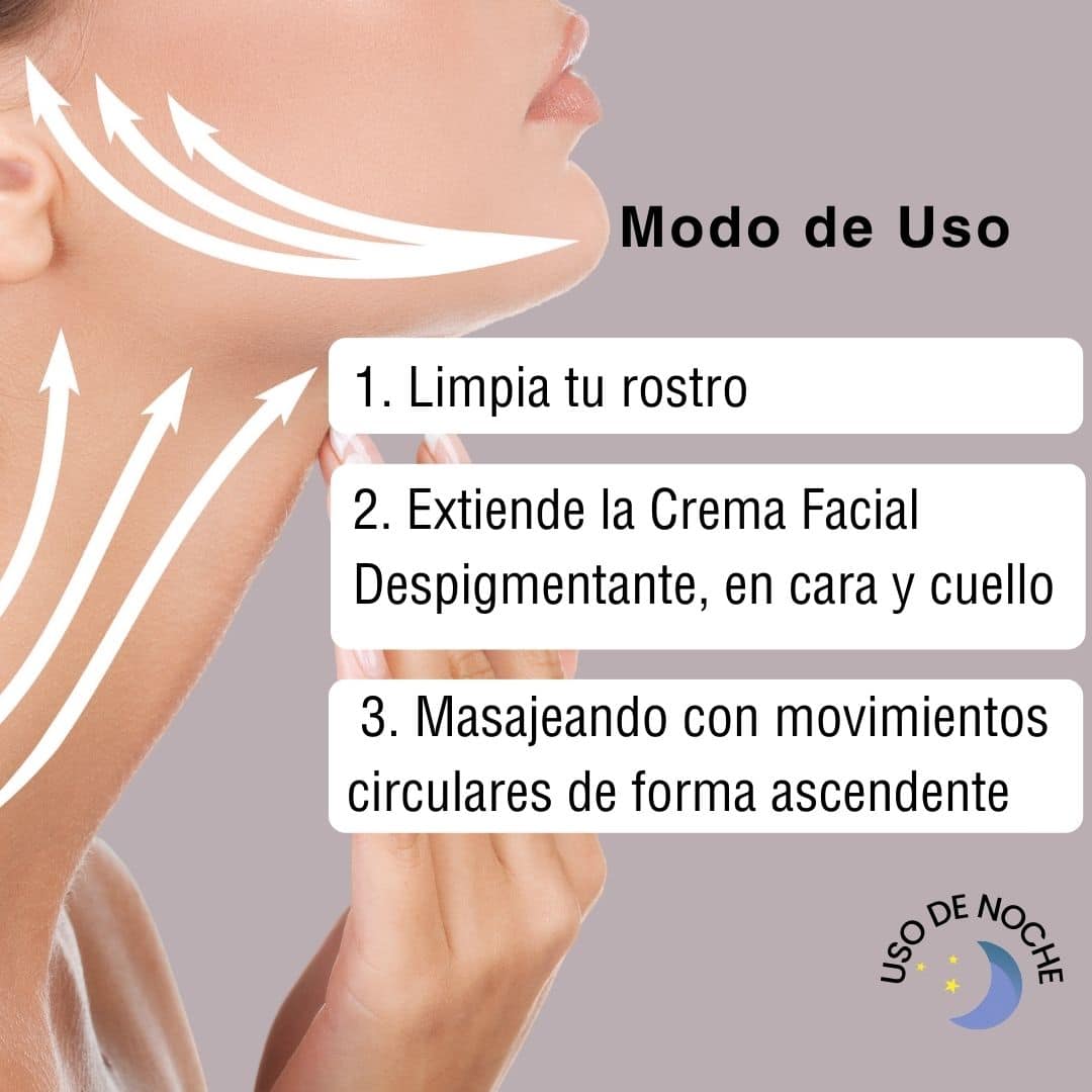 Spread theDepigmenting Facial Cream. Tranexamic Acid and Thanaka massaging with upward circular movements until it is completely absorbed, which helps stimulate circulation and promotes the penetration of the product into the pores.