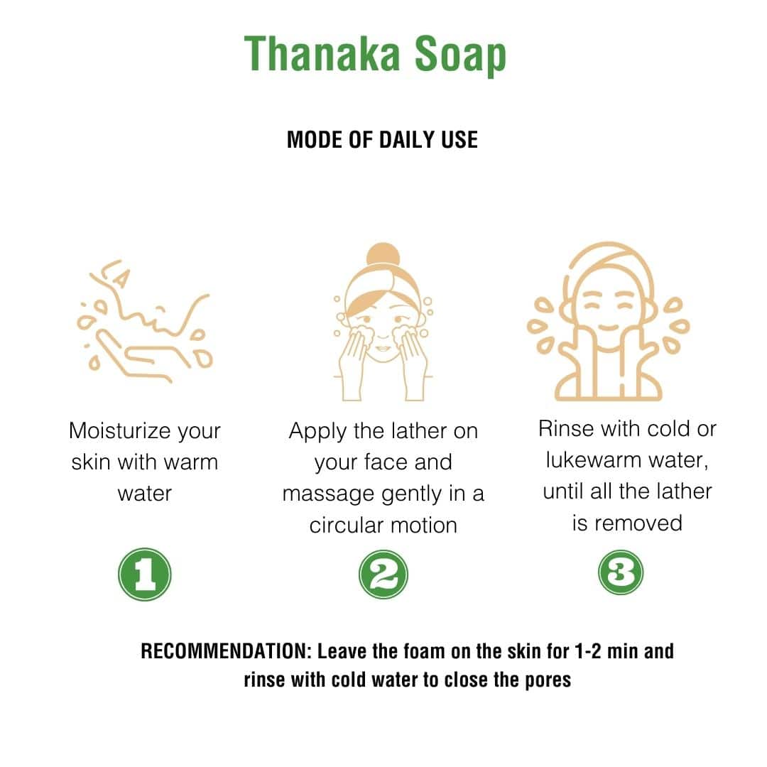 - El Jabón de extracto de Thanaka reduce el envejecimiento prematuro de las células de la piel.