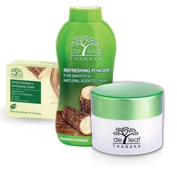 1 Moisturizing thanaka cream 40ml; 1 Thanaka Satin Translucent Powder 30 g; 1 Thanaka Soap 100g